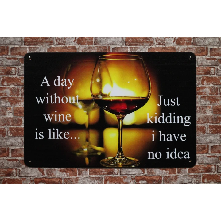 Grappig A Day Without Wine metalen bord (20×30 cm) voor wijnliefhebbers.