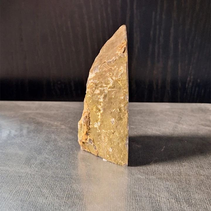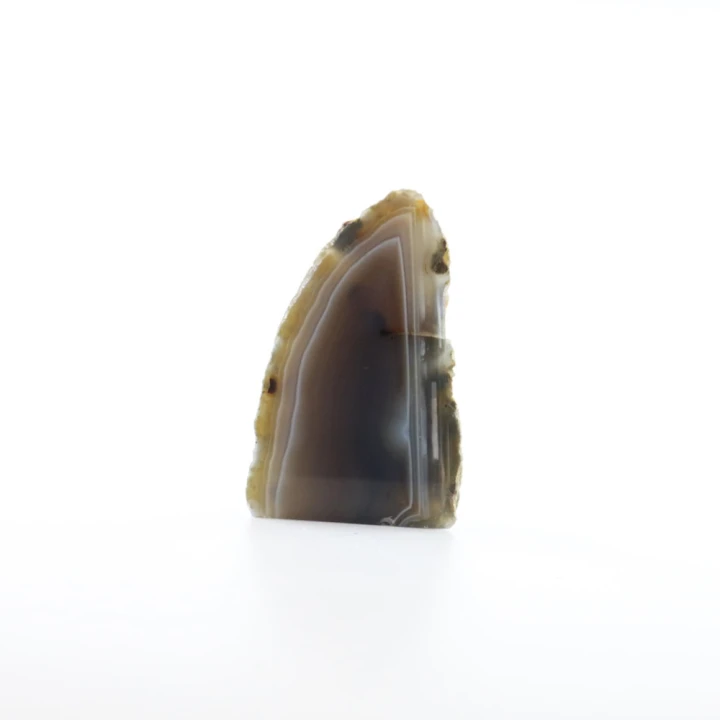 Agaat einde bruin natuurlijk is aan een zijde gepolijst. de achterkant van agaat einde bruin natuurlijk is nog ruw. een prachtig decoratiestuk. De steen is licht doorschijnend en heeft een matte tot zijdeglans.