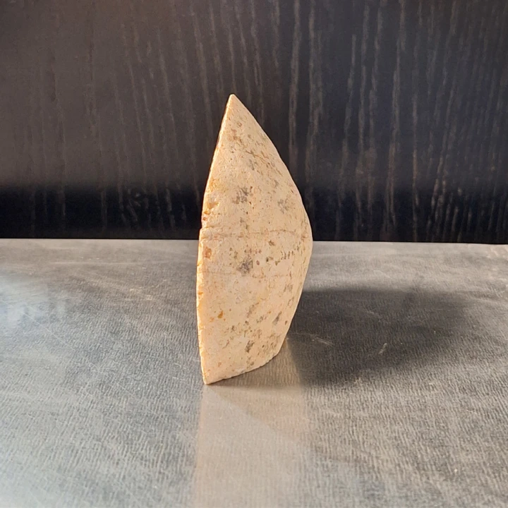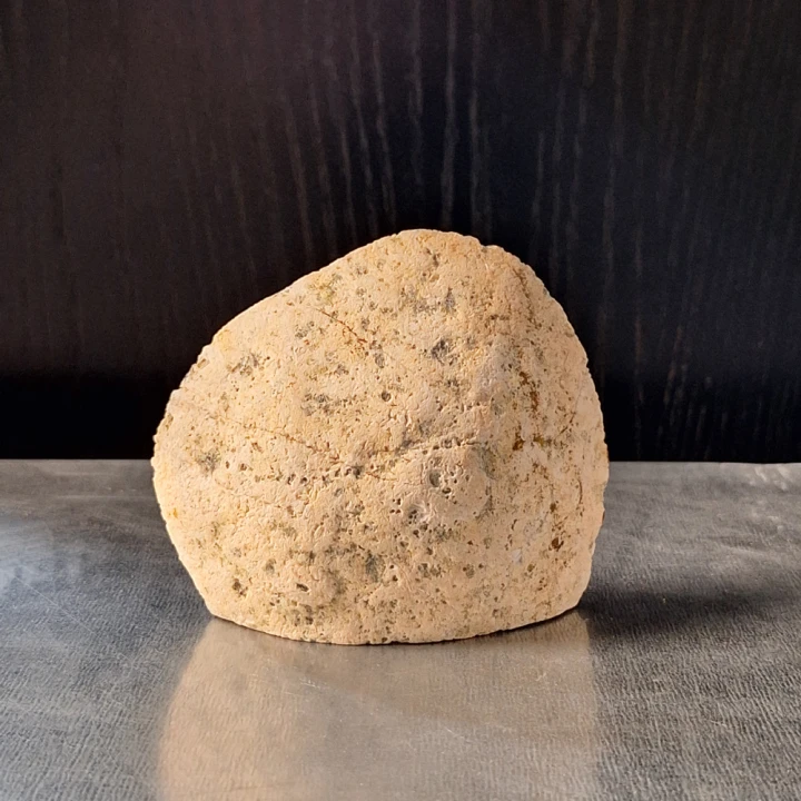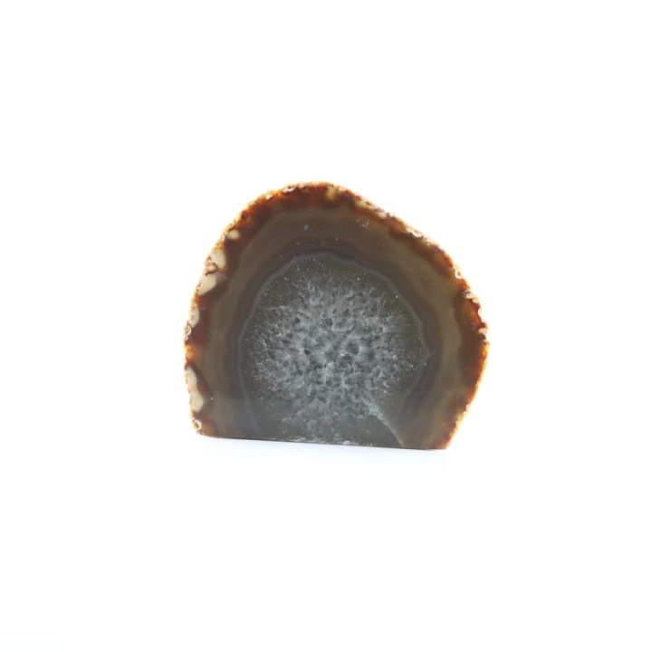 Agaat einde bruin is aan een zijde gepolijst. de achterkant van agaat einde bruin is nog ruw. een prachtig decoratiestuk. De steen is licht doorschijnend en heeft een matte tot zijdeglans.