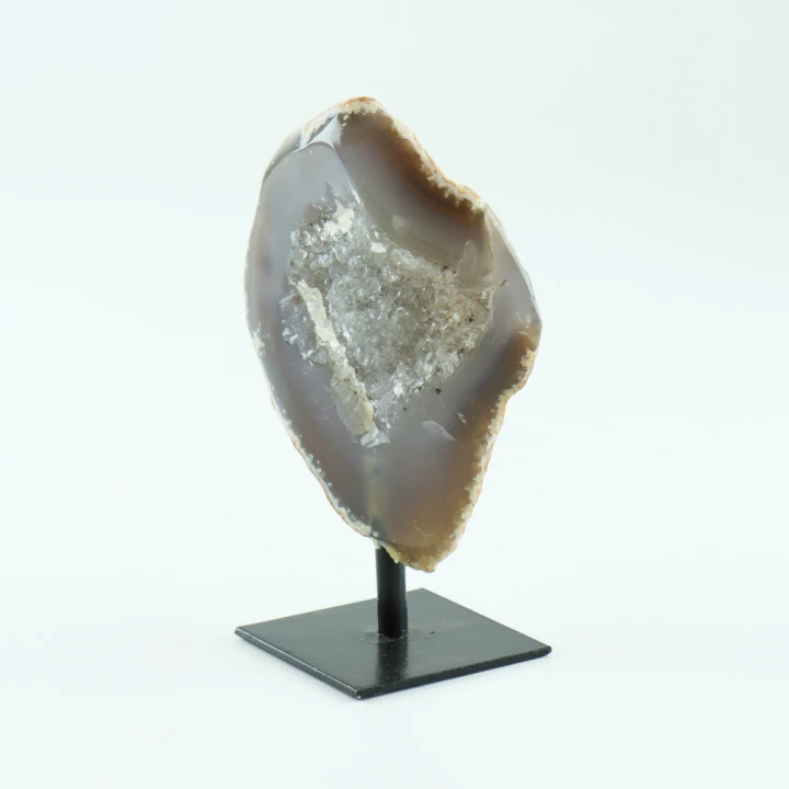 Agaat is een type chalcedoon, een microkristallijne vorm van kwarts, dat wereldwijd wordt gevonden. De naam “agaat” is afkomstig van de rivier Achates (nu bekend als de Dirillo) in Sicilië, waar de steen voor het eerst werd ontdekt in de oudheid. De vorming van agaat vindt plaats in vulkanische gebieden, waar silicaatrijke oplossingen zich ophopen in holtes van basaltgesteente. Dit proces, dat miljoenen jaren duurt, resulteert in de prachtige lagen en patronen waar agaat om bekend staat.