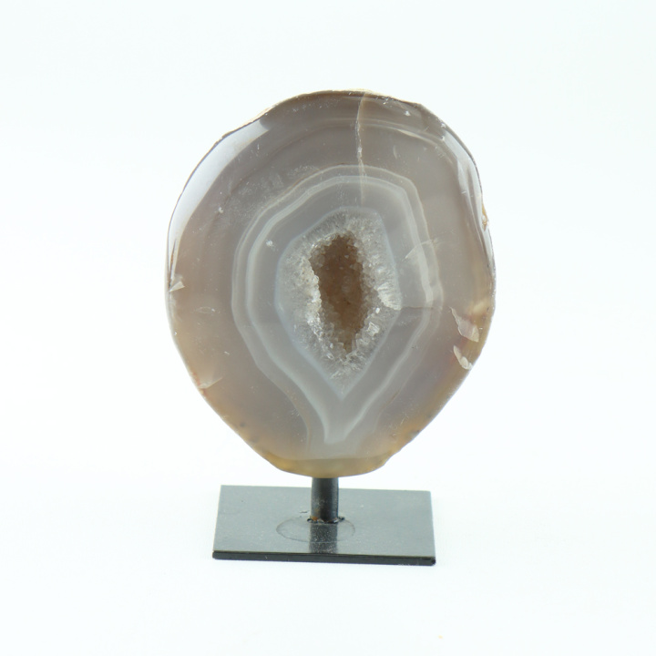 Agaat is een type chalcedoon, een microkristallijne vorm van kwarts, dat wereldwijd wordt gevonden. De naam “agaat” is afkomstig van de rivier Achates (nu bekend als de Dirillo) in Sicilië, waar de steen voor het eerst werd ontdekt in de oudheid. De vorming van agaat vindt plaats in vulkanische gebieden, waar silicaatrijke oplossingen zich ophopen in holtes van basaltgesteente. Dit proces, dat miljoenen jaren duurt, resulteert in de prachtige lagen en patronen waar agaat om bekend staat.