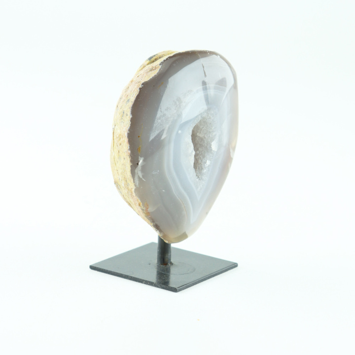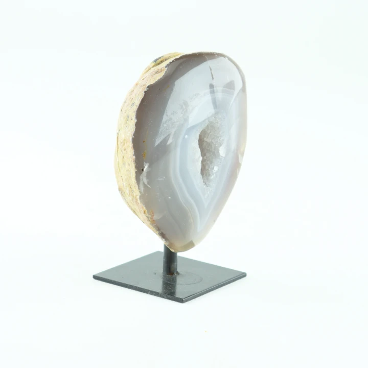 Leuk weetje: De kleurrijke banden in agaat ontstaan door variaties in mineralensamenstelling, zoals ijzer en mangaan, die tijdens de kristallisatie verschillende lagen vormen.