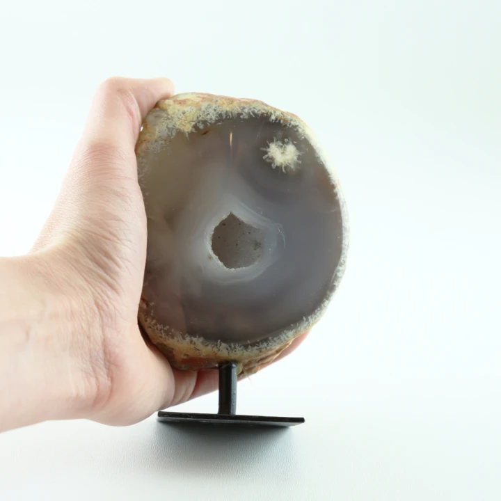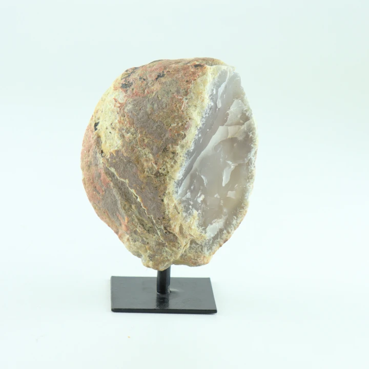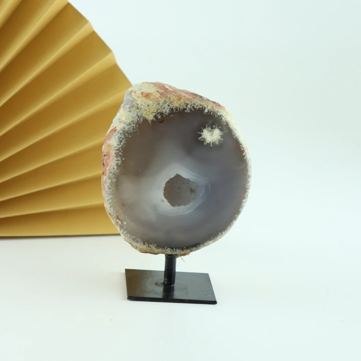 Leuk weetje: De kleurrijke banden in agaat ontstaan door variaties in mineralensamenstelling, zoals ijzer en mangaan, die tijdens de kristallisatie verschillende lagen vormen.
