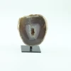 De agaat natuur rots op standaard straalt een natuurlijke elegantie uit met zijn unieke kleuren en patronen. Agaat komt voor in verschillende tinten, zoals bruin, grijs, wit, rood en zelfs blauw. De steen is vaak gelaagd, wat een prachtig effect geeft wanneer het licht erop valt. Dit specifieke stuk is een harmonie van aardetinten, waardoor het perfect past in zowel moderne als klassieke interieurs.