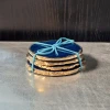 De set bestaat uit 4 stuks, en elk exemplaar heeft een eigen karakter, met prachtige blauwe kleurschakeringen, natuurlijke lijnen , Gouden rand en soms doorschijnende delen. Aan de onderzijde zijn kleine plastic nopjes aangebracht, zodat je onderzetters geen krassen maken op tafels of andere oppervlakken.