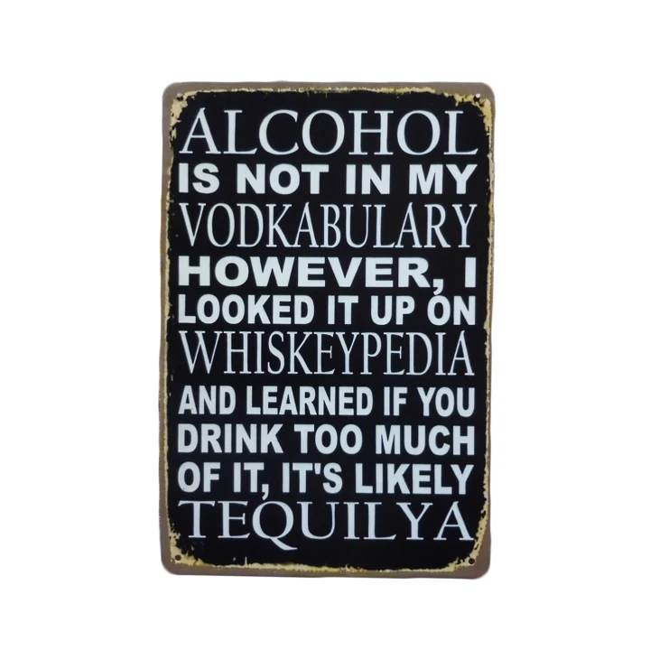 Het Alcohol Is Not metalen bord is vervaardigd uit stevig metaal en bedrukt met eco-vriendelijke, UV-bestendige inkt. Hierdoor blijven de kleuren scherp en levendig, zelfs bij langdurige blootstelling aan zonlicht. Het bord is daarom geschikt voor zowel binnen- als buitengebruik.