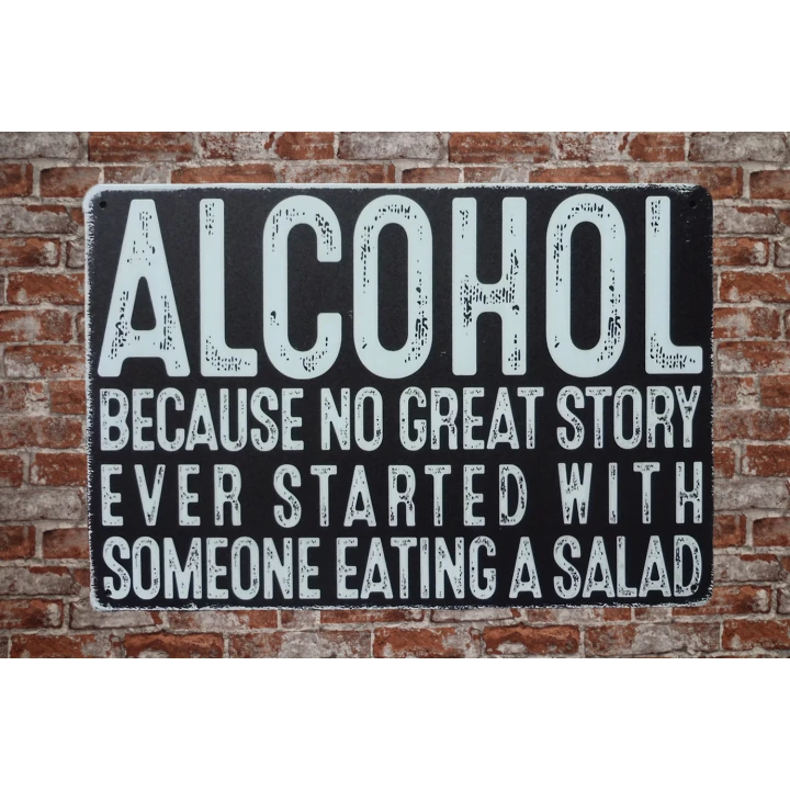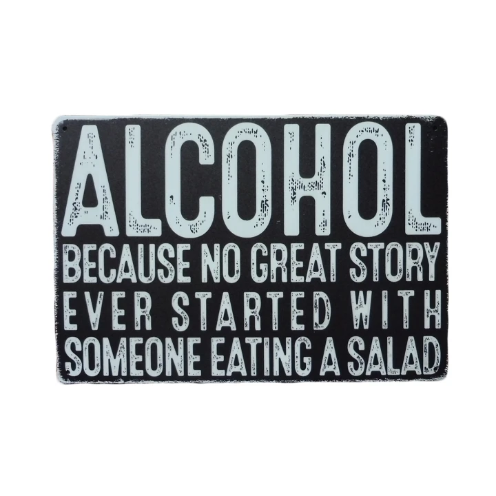 Grappig Alcohol metalen bord van 20×30 cm, perfect voor mancave, bar of keuken.