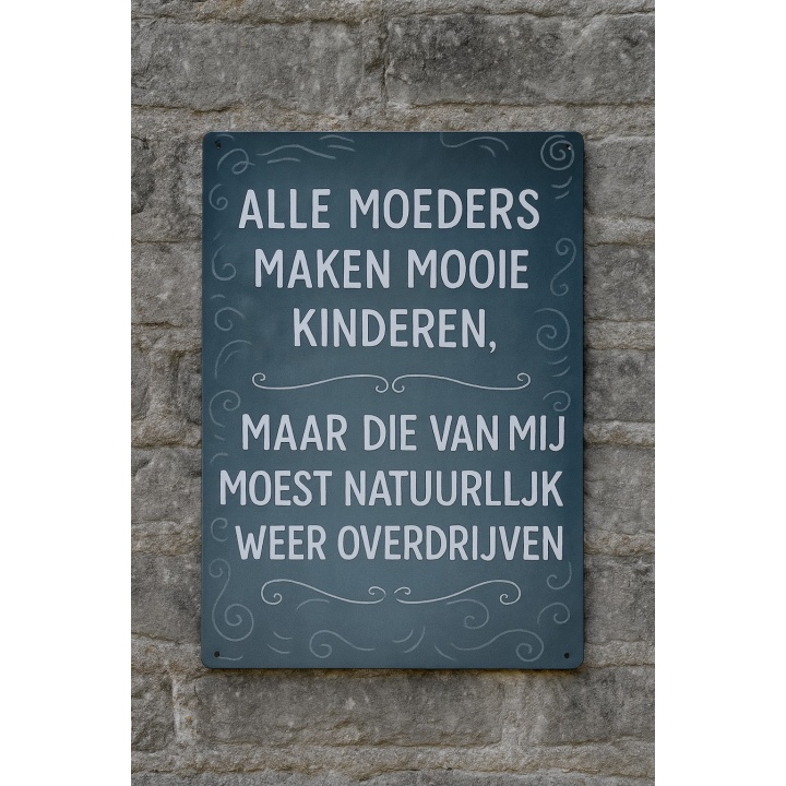 Met de tekst Alle moeders maken mooie kinderen, maar die van mij moest natuurlijk weer overdrijven zorg je gegarandeerd voor een glimlach.