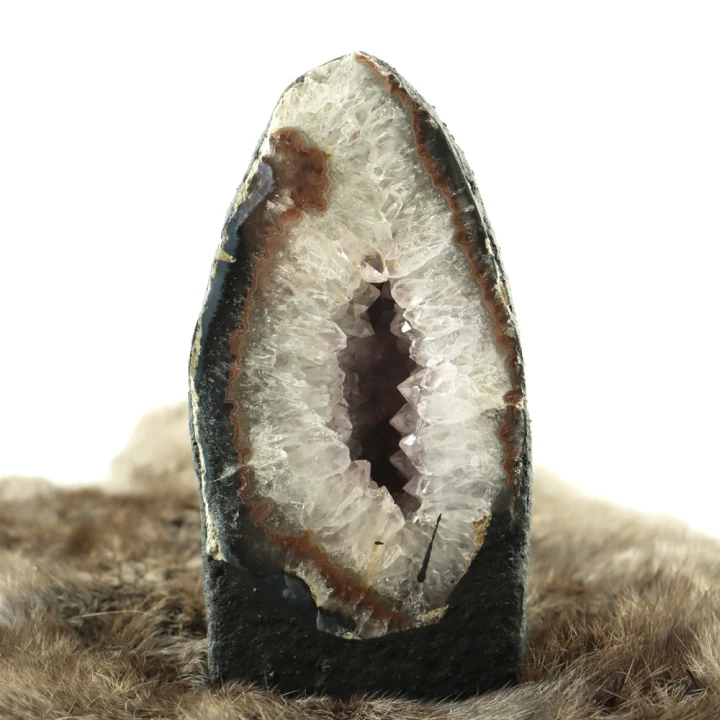 Amethist is een variëteit van kwarts en staat bekend om zijn spirituele en helende eigenschappen. De kristallen in een kleine amethist geode hebben dezelfde samenstelling als grote exemplaren, maar door hun kleinere formaat zijn ze vaak gemakkelijker te verkrijgen en goedkoper dan grotere geodes. Ze worden vaak gebruikt als decoratieve objecten, maar ook voor meditatie en heling.