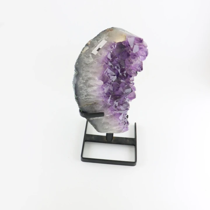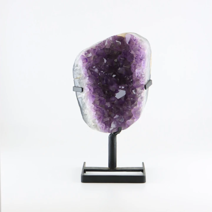 Deze prachtige creatie combineert de ruwe, natuurlijke kracht van Amethist met een verfijnde presentatie, waardoor het niet alleen een visueel hoogtepunt is, maar ook een krachtige bron van spirituele groei en heling.