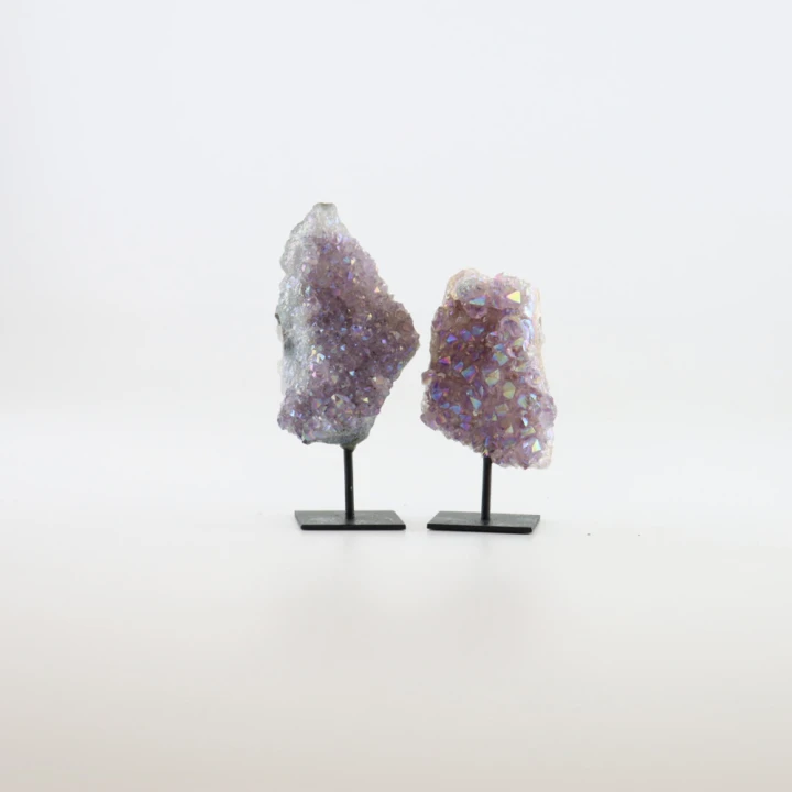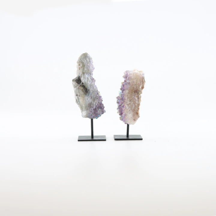 Amethist op standaard mini 2 stuks heeft een beschermende en zuiverende werking.