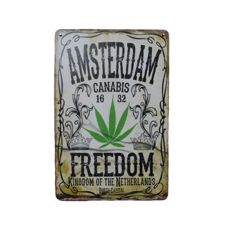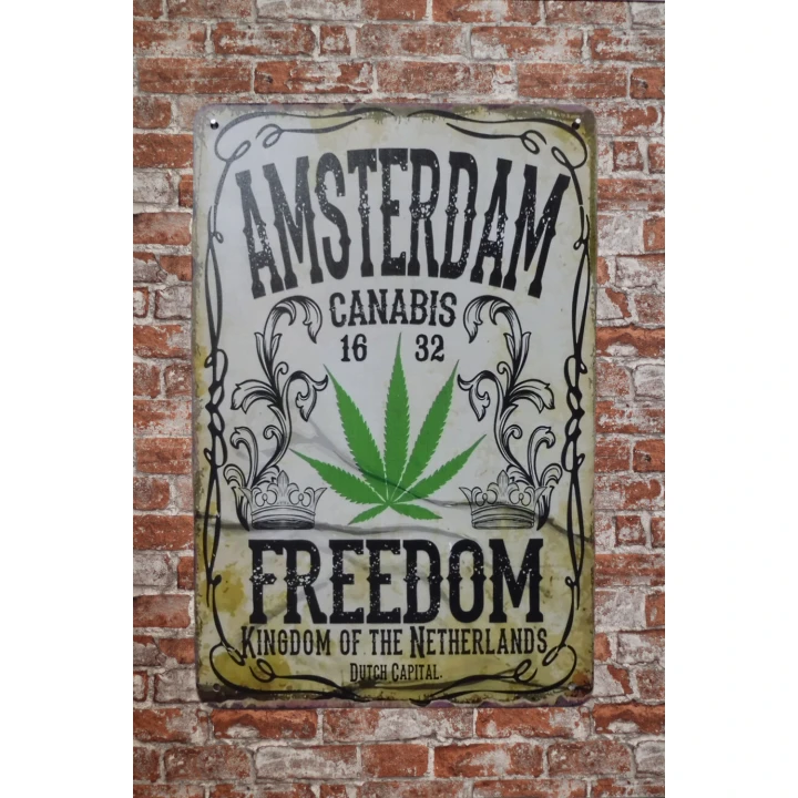 Amsterdam Canabis Metalen borden is een bijzonder decoratiestuk / Wand decoratie voor aan uw muur. U kunt het bordje ophangen in bijvoorbeeld uw mancave, schuur, huis, bar, café, garage, werkplaats, buiten, hobby kamer of women cave.