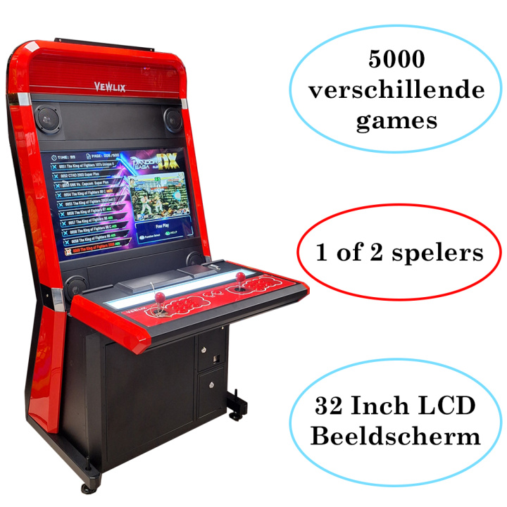 Deze arcade kast zit boordevol 5000 klassieke arcade games, waaronder iconische titels uit de Taito-serie, spannende vechtspellen en tijdloze platformers. Speel bekende klassiekers zoals Pac-Man, Space Invaders en Street Fighter en ontdek opnieuw de magie van het retro-gamen. Dankzij de authentieke joysticks en knoppen beleef je een echte arcade-ervaring zoals vroeger!