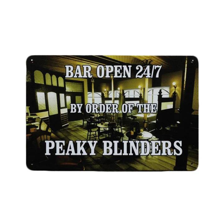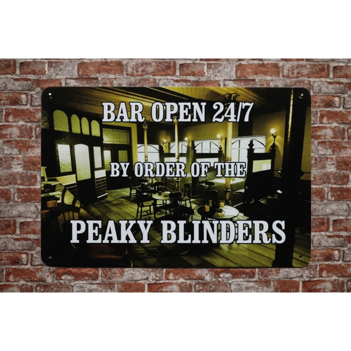 Peaky Blinders bord van 20×30 cm met ‘Bar Open’ design.