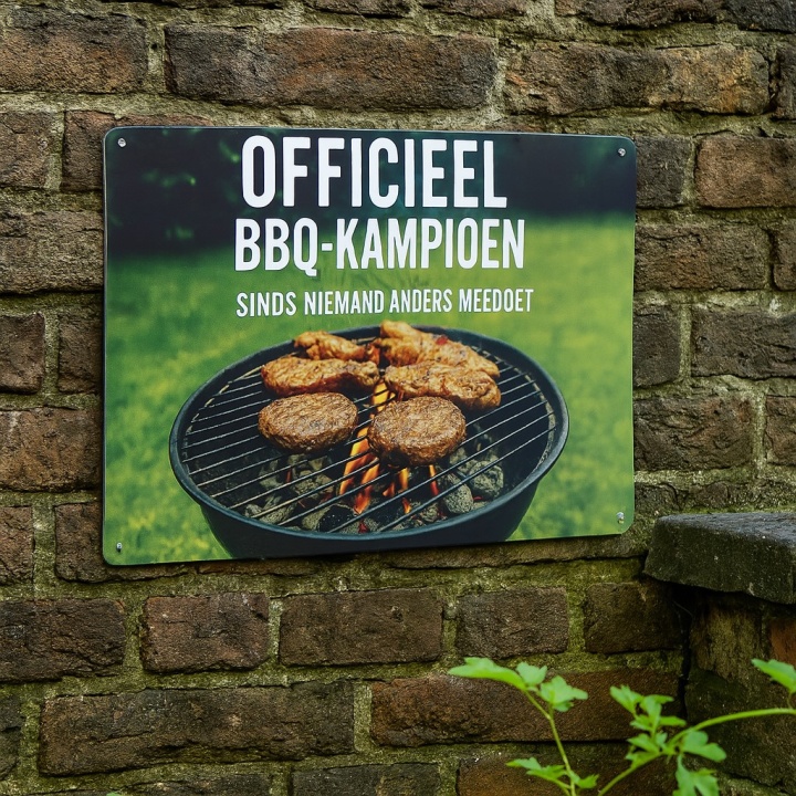 Ben jij de grillmaster in huis? Laat het zien met dit Officieel BBQ Kampioen metalen bord van Cave & Garden! Dit grappige BBQ bord met de tekst “Sinds niemand anders meedoet” is een echte blikvanger in je tuin, op het terras of bij de barbecue. De felle kleuren, sappige burgers en vlammen zorgen voor een opvallend en stoer design. Perfect voor elke barbecue-liefhebber.