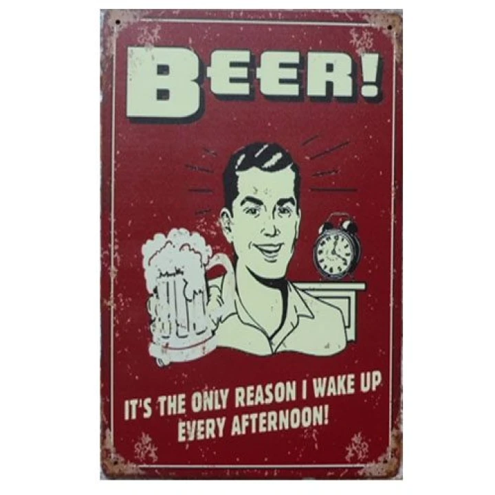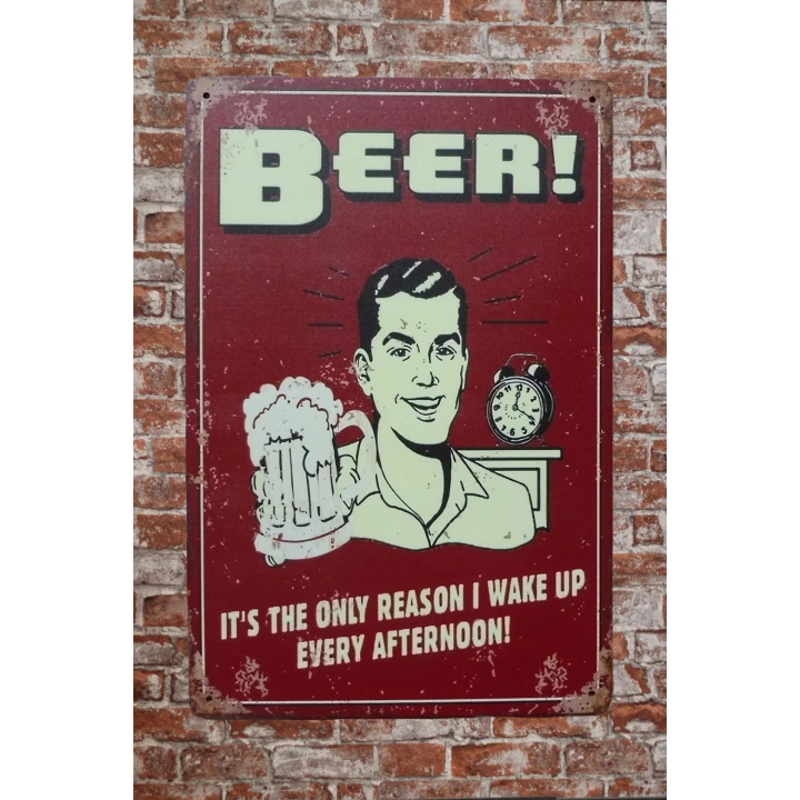 Dankzij de voorgeboorde gaten bevestig je dit metalen bord eenvoudig met spijkers, schroeven of een touwtje. Ook leuk als origineel cadeau voor bierliefhebbers, vaders of vrienden die houden van een knipoog aan de muur.