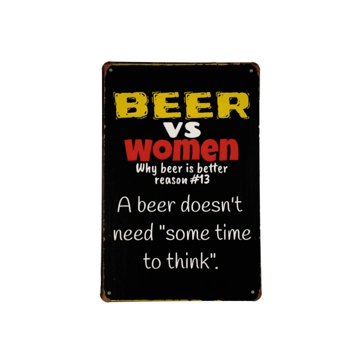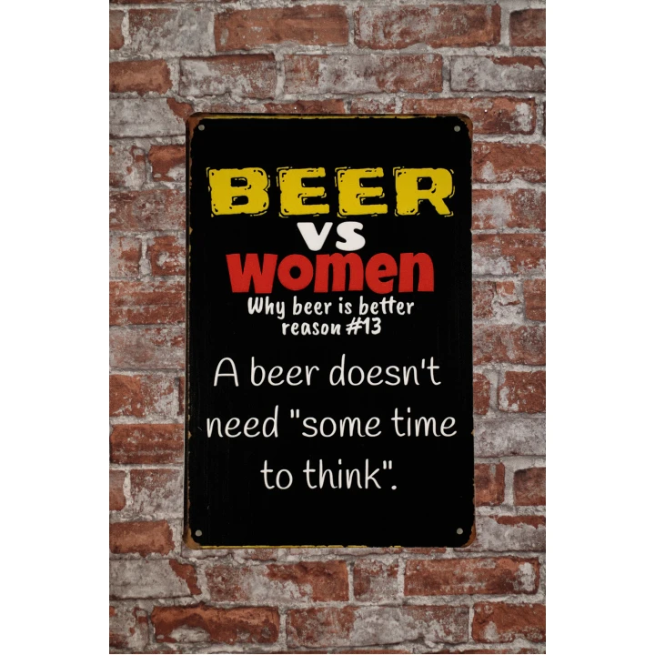 Geef je mancave of bar een grappige twist met dit Beer vs Women metalen bord.