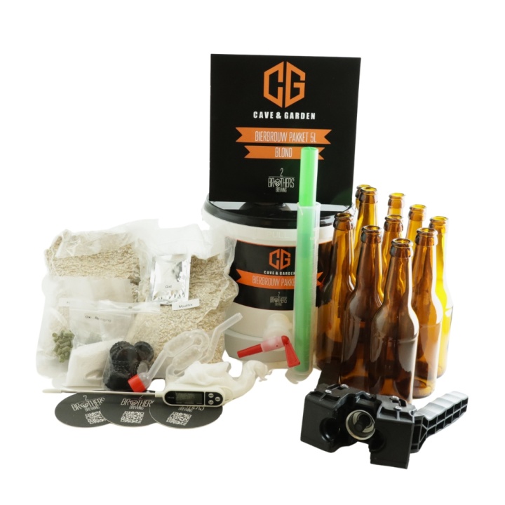 Je ontvangt alle cruciale onderdelen voor 5 liter ambachtelijk blond bier. Dit is een compleet pakket, zodat je meteen aan de slag kunt: