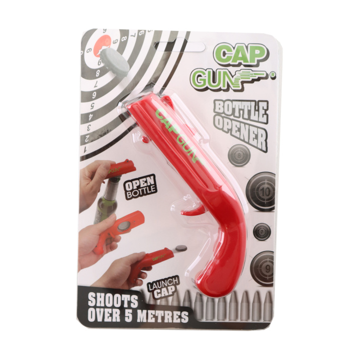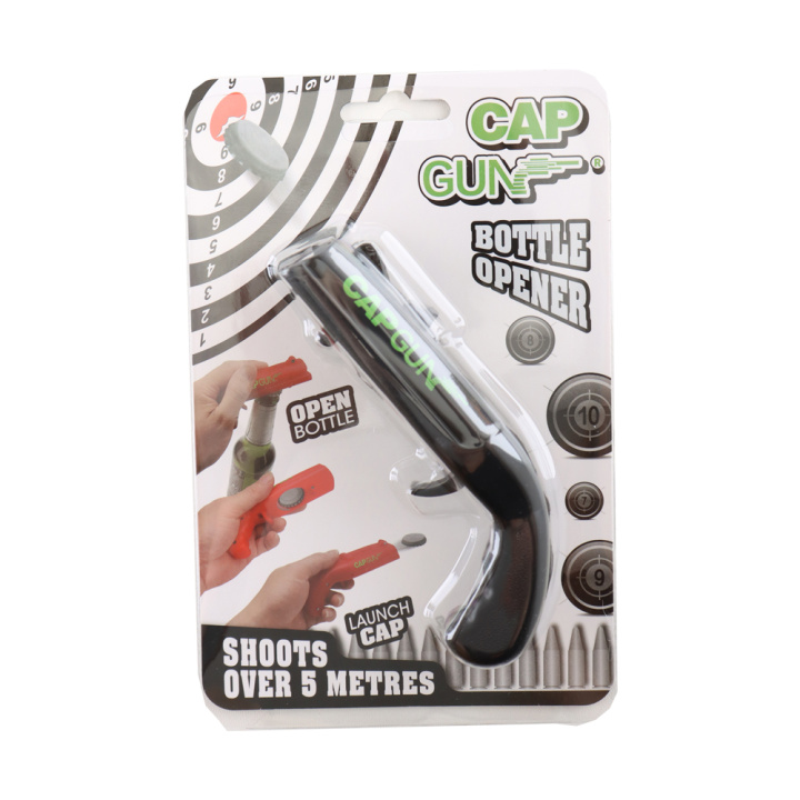 Maak het openen van je biertje extra leuk met deze bierdop schieter ook wel bekend als een capgun. Deze gadget is een combinatie van flesopener en schieter in één. Perfect voor feestjes, borrels, mancaves of als cadeautje voor bierliefhebbers.
