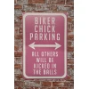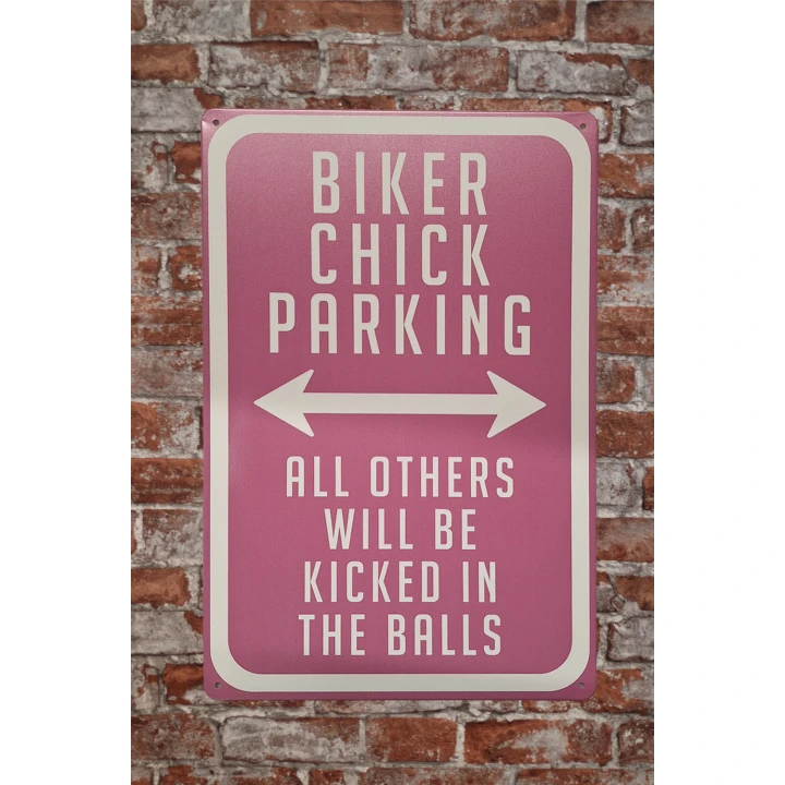 Laat je biker spirit zien met het Biker Chick Parking Only metalen bord van 20×30 cm.