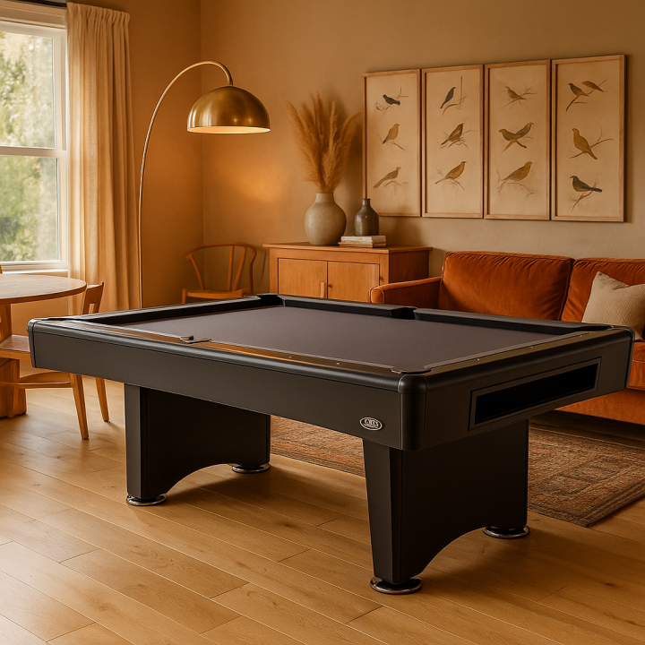 De Eliminator 7ft pooltafel heeft een 3-delig leistenen blad van 25 mm dik, wat zorgt voor een perfecte speelervaring en een lange levensduur. Het onderstel van 15 mm dik multiplex is afgewerkt met een matzwarte PVC fineer voor een moderne en strakke uitstraling. De toprail is gemaakt van 39 mm dik multiplex en afgewerkt met matzwart laminaat voor extra stevigheid en stijl.