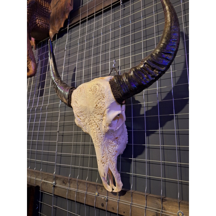 Deze buffelkop is circa 62cm groot en is uniek aangezien we met een natuur product te maken hebben.