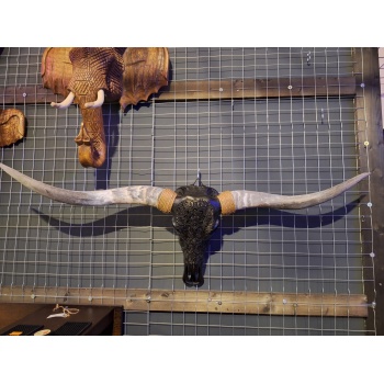 Deze buffelkop is circa 62cm breed en 70cm lang en is uniek aangezien we met een natuur product te maken hebben.