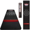 Dart mat van 300 cm lang en 65 cm breed met een dartbord erop gedrukt. Incl. officiële dart afstand streep op 2,37 meter.