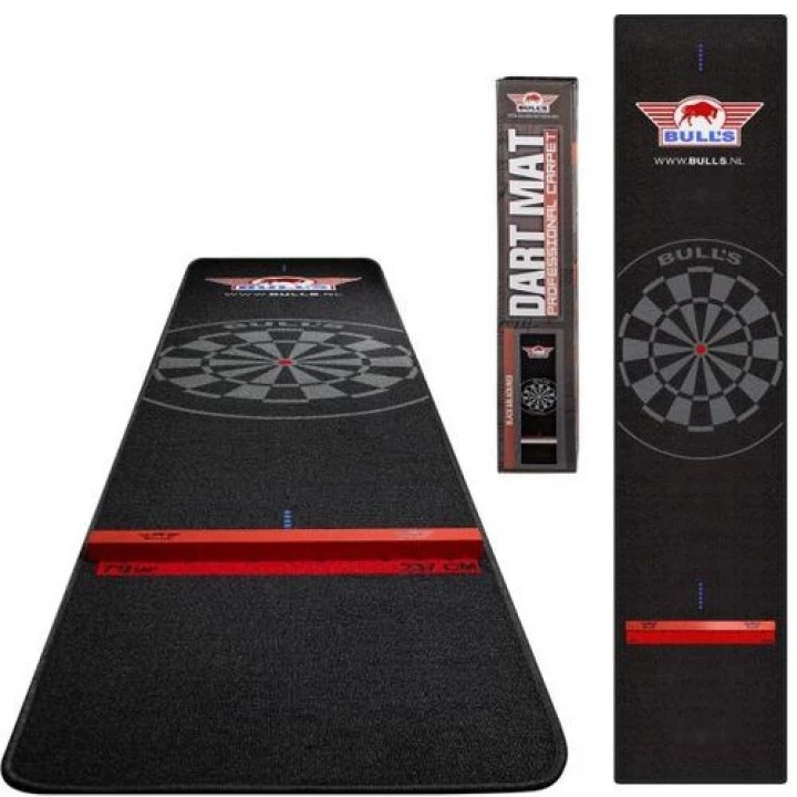 De Bull’s Carpet Dartmat 300×65 cm. Deze stoffen dartmat beschermt niet alleen uw vloer tegen bouncende pijlen maar geeft ook duidelijkheid over de gooiafstand.