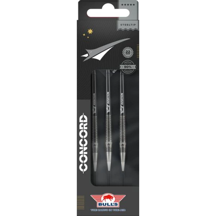 Deze mooie Bulls Concord 90% Steeltip dartpijl is een goede pijl voor beginnende en ervaren darters. Verkrijgbaar in 22-23-24 gram. Met zijn extreem spitse neus, zorgt deze barrel ervoor dat de dartpunt soepel en moeiteloos in de barrel vloeit.