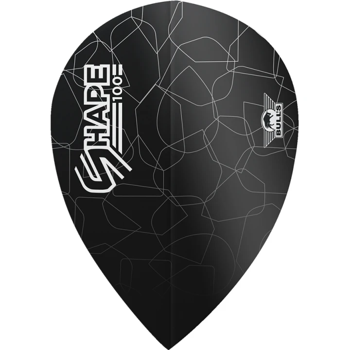 De moderne Bulls Shape 100 Black Pear Flight in het zwart met een shapes design erop. Perfect voor alle dartpijlen en shafts.
