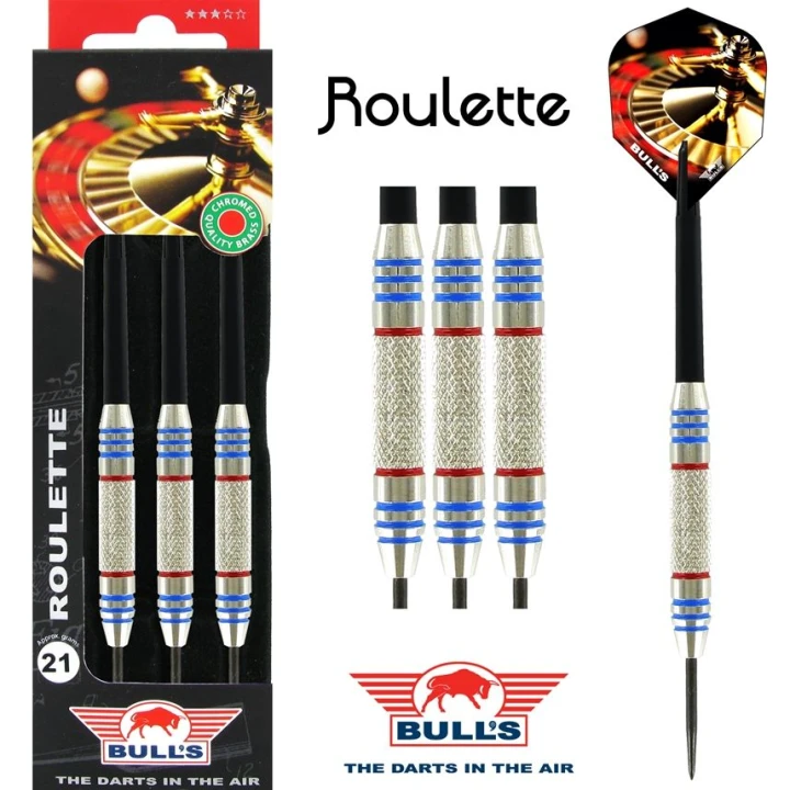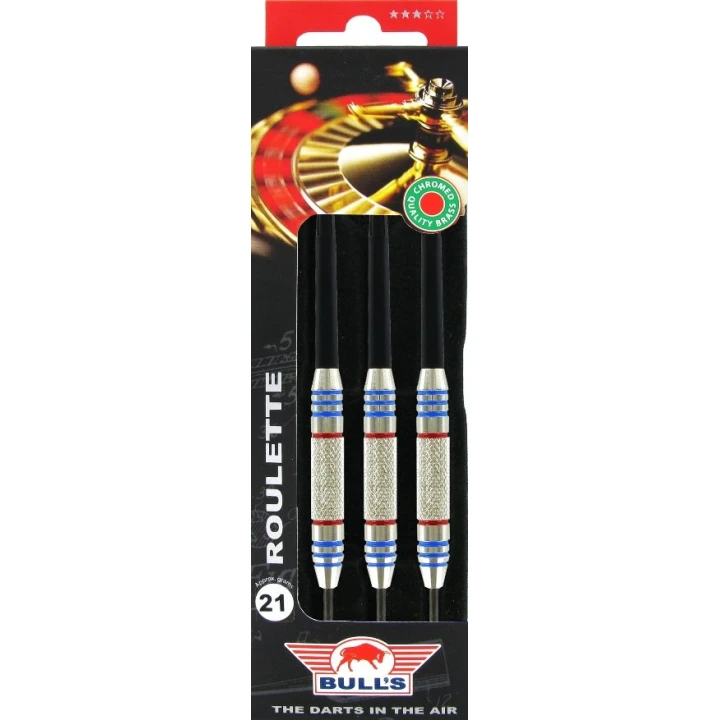 De Bulls steeltip Roulette silver Brass dartpijlen zijn afgewerkt met een nickel coating en zijn voorzien van kleurrijke accenten.