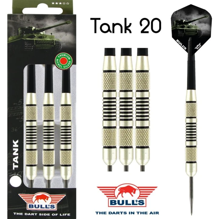 De Bull’s Steeltip Tank Nickel Silver dartpijlen zijn ideaal voor beginnende darters, deze pijlen met gladde barrels zijn mooi afgewerkt met een nickel coating waardoor de pijlen een mooie uitstraling krijgen.