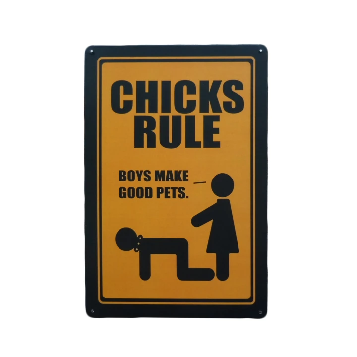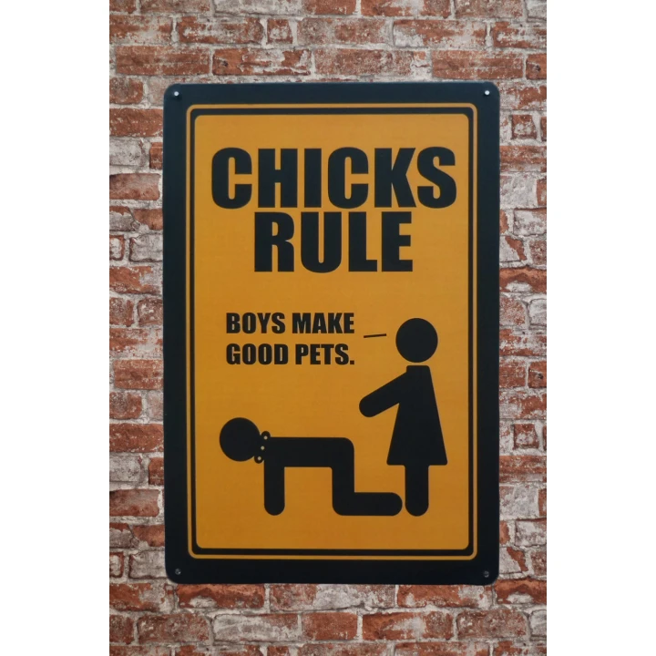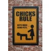 Chicks Rule Metalen borden is een bijzonder decoratiestuk / Wand decoratie voor aan uw muur. U kunt het bordje ophangen in bijvoorbeeld uw mancave, schuur, huis, bar, café, garage, werkplaats, buiten, hobby kamer of women cave.