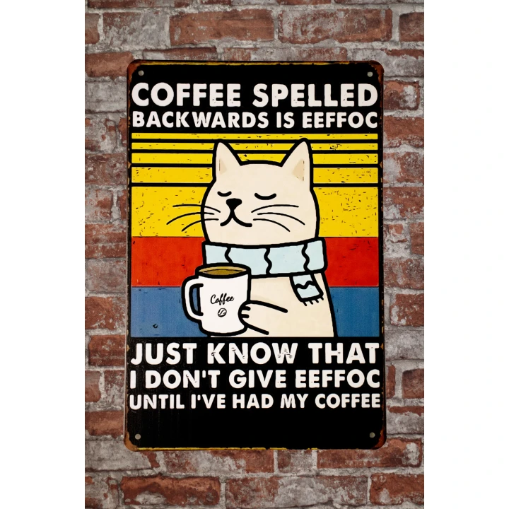 Geef je koffiehoek of keuken een vleugje humor met het Coffee Spelled Backwards metalen bord.