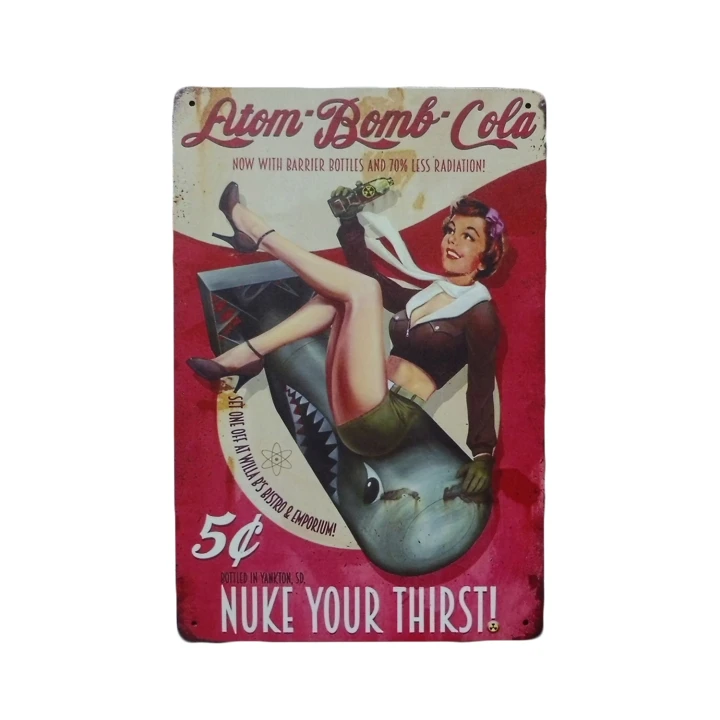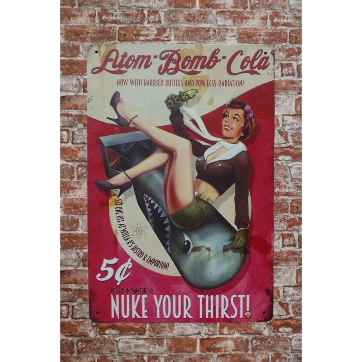 Cola Nuke metalen bord van 20×30 cm met grappig en opvallend design. Gemaakt van stevig metaal en bedrukt met UV-bestendige, eco-vriendelijke inkt voor langdurige kleur. Geschikt voor binnen en buiten en eenvoudig op te hangen dankzij de voorgeboorde gaten. Snelle levering via Cave & Garden.