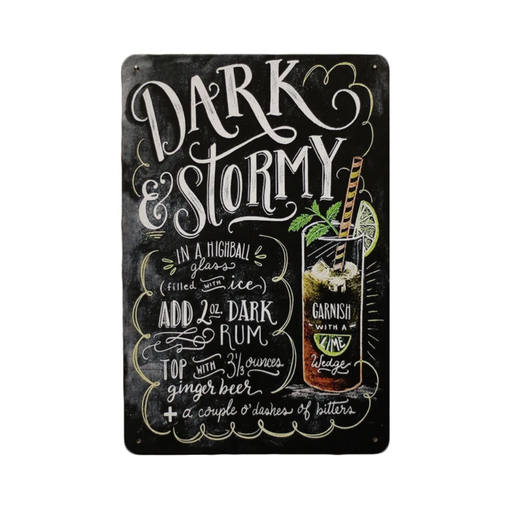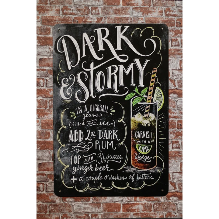Dark Stormy metalen bord van 20×30 cm met cocktailillustratie.