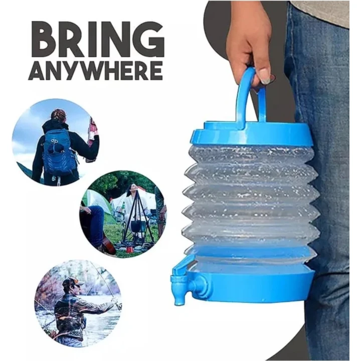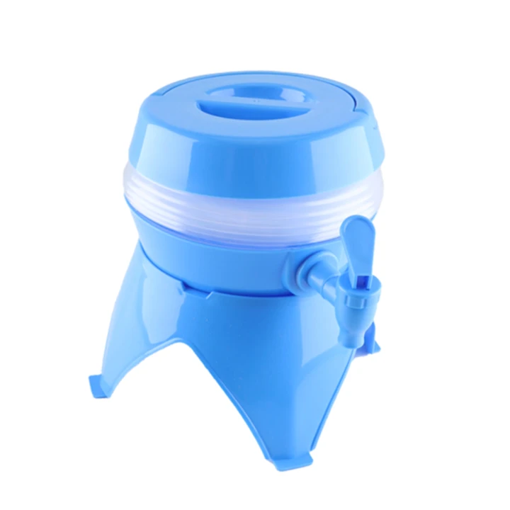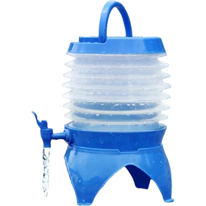 Deze opvouwbare kunststof drankdispenser is na gebruik makelijk op te vouwen en neemt weinig ruimte in.