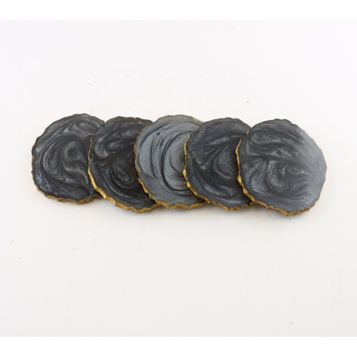 Elke onderzetter is ovaal en meet 10 x 8 cm, ideaal voor zowel glazen als mokken. De set bestaat uit vijf unieke exemplaren, waarbij het handgegoten epoxy elk stuk een eigen karakter geven.