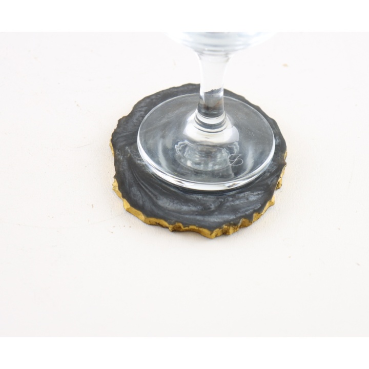 Breng elegantie naar uw huis, kamer of womencave met deze prachtige onderzetters met zwarte epoxy en een subtiel goud randje.