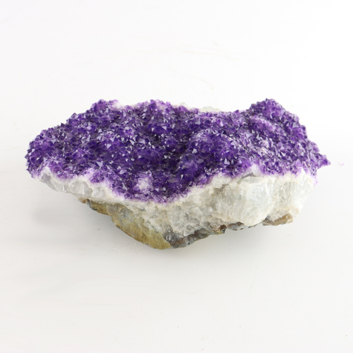 Deze donkere amethist brok AA+ kwaliteit is een indrukwekkend natuurproduct van 1856 gram met een lengte van 21 cm. De diepe paarse kristallen stralen luxe en rust uit. Ideaal voor interieurdecoratie, spirituele doeleinden of als betekenisvol cadeau.