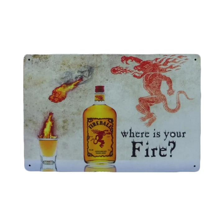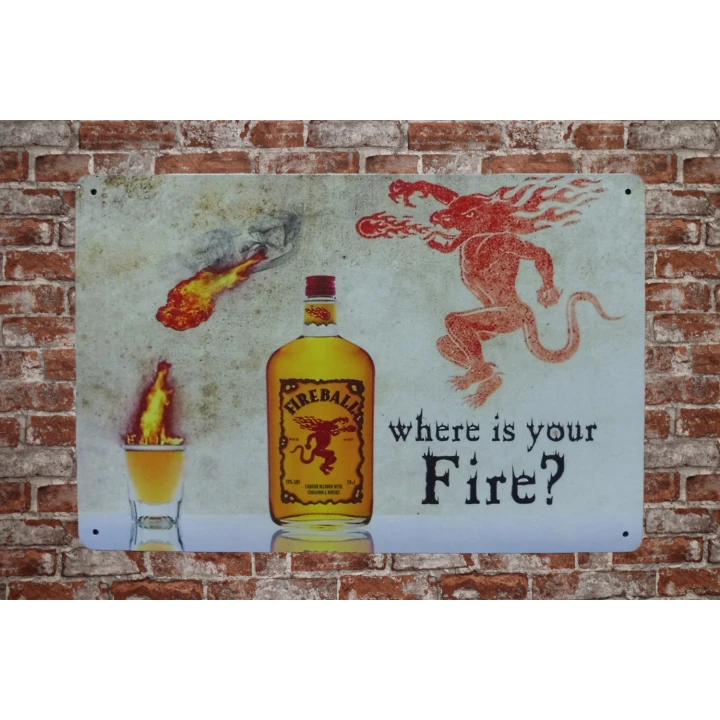 Of je nu zoekt naar een origineel cadeau voor een vriend of je eigen bar, garage of werkplaats wilt verfraaien: dit Fire Ball metalen bord geeft elke ruimte karakter.