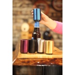 Zet de Flesopener over de fles heen. Druk de flesopener in een vloeiende beweging over de fles heen tot deze niet meer verder kan. Haal de Flesopener van de fles af en de dop zal aan de ingebouwde magneet blijven hangen.