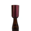 Zet de Flesopener over de fles heen. Druk de flesopener in een vloeiende beweging over de fles heen tot deze niet meer verder kan. Haal de Flesopener van de fles af en de dop zal aan de ingebouwde magneet blijven hangen.
