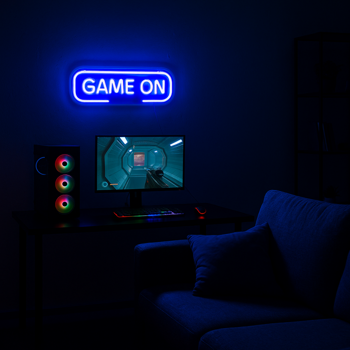 Maak jouw gamehoek helemaal af met deze opvallende game on neon verlichting. Dit blauwe LED-neonbord met de tekst ‘GAME ON’ is perfect voor elke gamer die van sfeer houdt. De heldere kleur zorgt voor een energieke uitstraling en trekt direct de aandacht. Ideaal voor in een gaming setup, slaapkamer, mancave of zelfs in een gamewinkel.