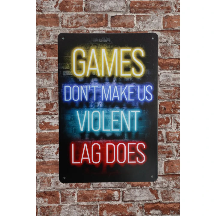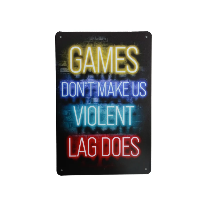 Breng een vleugje humor en stijl naar je gameroom met het Games Lag metalen wandbord van Cave & Garden.