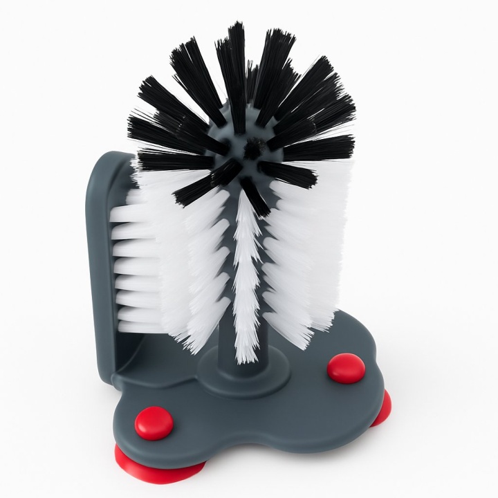 De stevige dubbele borstel is speciaal ontworpen voor het grondig reinigen van glazen, mokken en flessen. Dankzij de slimme opstelling met een verticale en een zijborstel worden zowel de binnenkant als de buitenzijde tegelijk gereinigd.