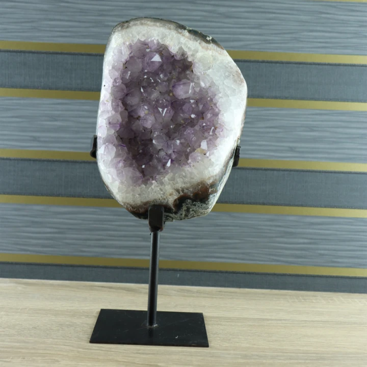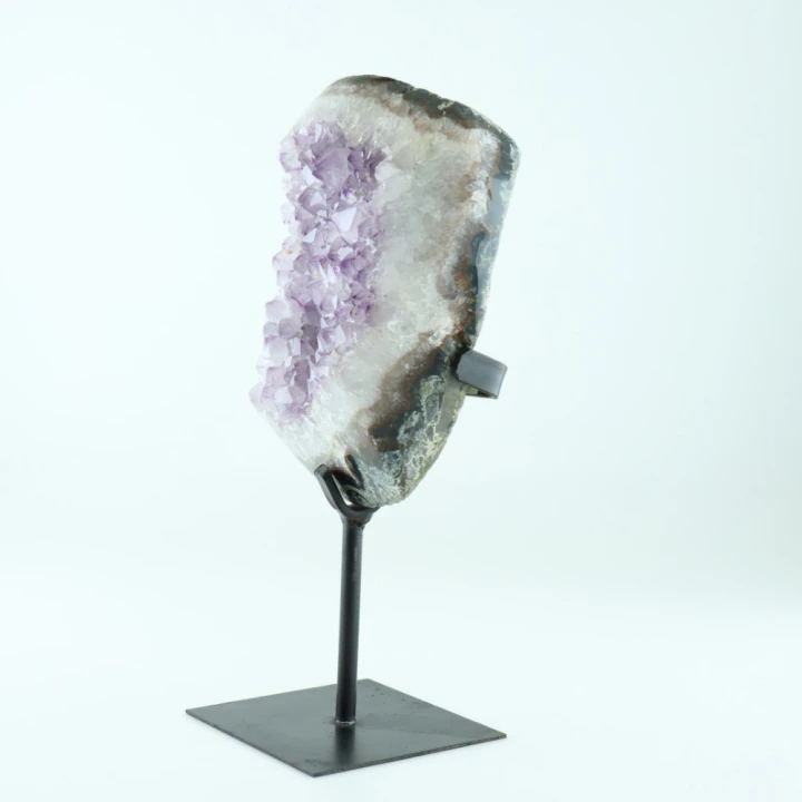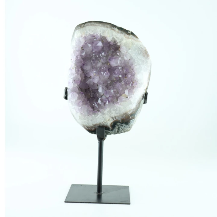 Amethist is een edelsteen die wordt gevormd in vulkanisch gesteente. De steen ontstaat door miljoenen jaren van kristallisatieprocessen waarbij silicaatmineralen samenkomen. De grootste en mooiste amethistformaties worden gevonden in landen als Brazilië, Uruguay, en Madagaskar. Vooral Brazilië staat bekend om zijn indrukwekkende amethistgeodes die je versteld doen staan door hun grootte en intensiteit van kleur.
