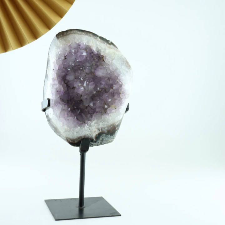 Leuk weetje: Wist je dat amethist soms gevonden wordt in enorme geodes, die groot genoeg kunnen zijn om in te staan? Deze natuurlijke wonderen worden vaak “amethistkathedralen” genoemd.
