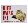 Laat zien dat jouw kat waakt met het Hier Waak Ik Maine Coon Metalen bord.